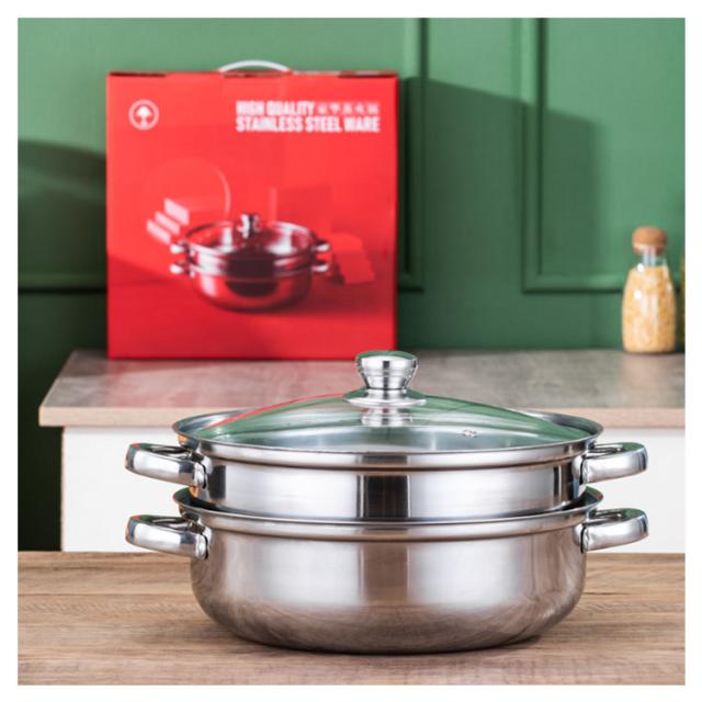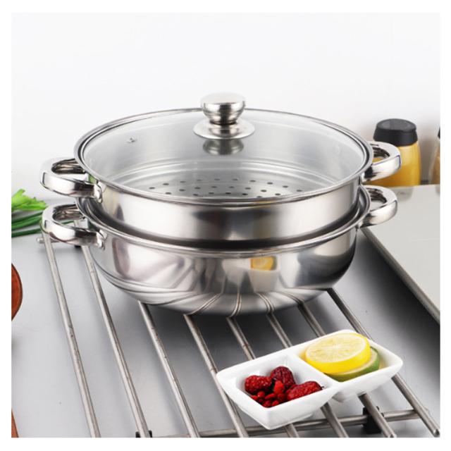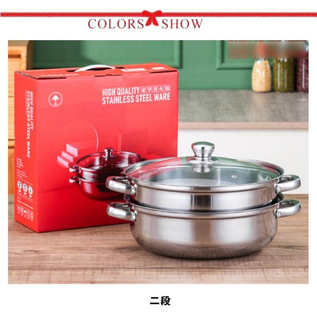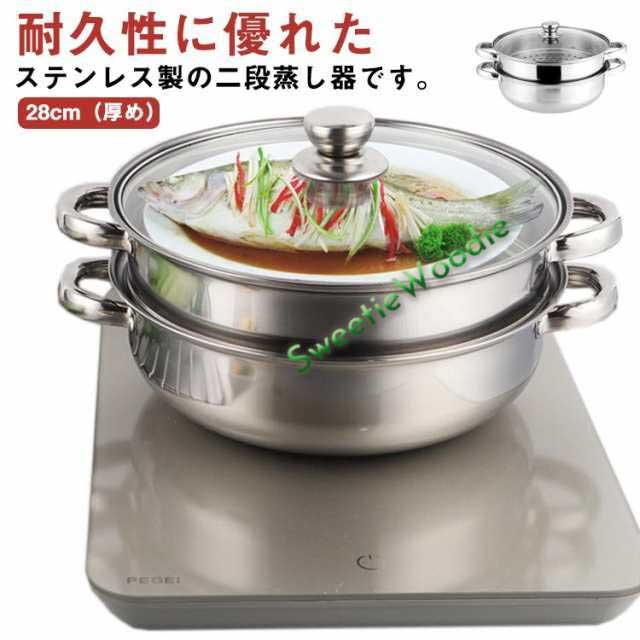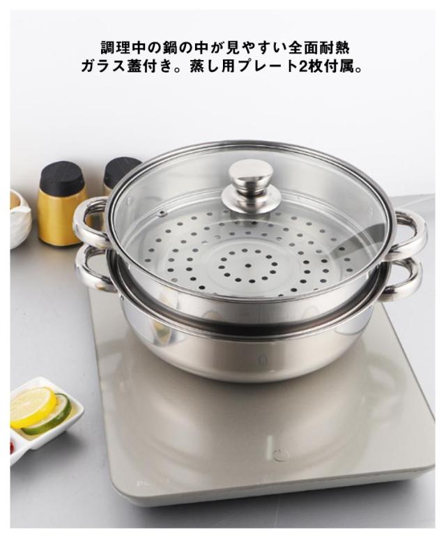 蒸し鍋 ステンレス 28cm 二段 蒸し器 せいろ ih スチーマー IH対応 ガス対応 両手鍋 中華鍋 多用途 ガラス製蓋付 蒸し用プレート付属 二段蒸し器 ステンレス 調理器具 キッチン 直火対応
