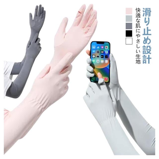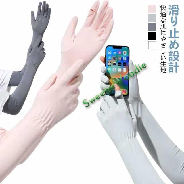 レディース 日焼け対策 アウトドア 袖カバー スマホ操作 アームカバー 冷感 腕カバー 指先まで 日焼け止め 紫外線カット uvカット 指あり 滑り止め 涼しい 自転車 暑さ対策 手袋 運転 サイクリング ゴルフ 無地 母の日 プレゼント