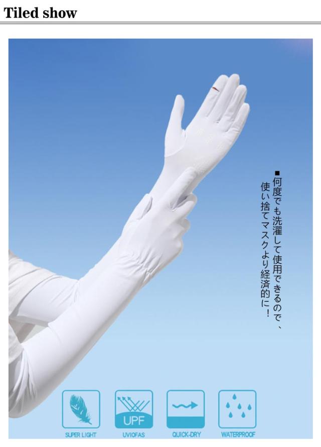 | ☆ 滑り止め設計 ☆ ■二の腕部分はボタンで調整可能! ■上腕周りより、サイズを調整できて、ズレ落ちを防止できます。 ■手首は伸縮性のあるデザイン! ■手首に最も快適な体験を与えながら調整することができる。 ☆ 快適な肌にやさしい生地 ☆ ■軽くて涼しく通気性のある肌に優しい柔らかな生地、冷感繊維を採用、軽くて柔らかくて肌触り良い。 ■何度でも洗濯して使用できるので、使い捨てマスクより経済的に! ■洗濯10回後でもほとんど変わることはありません。 アウトドアやスポーツにも最適! ■手のひらオーペンだからあらゆるシーンで大活躍! ■ガーデニングやサイクリングなどの外での作業も! ■手のひらがあいているから、指先の細かい作業も邪魔にならない。 ■アウトドアでもどこでも使えるアクティブ女子のマストアイテム! | |