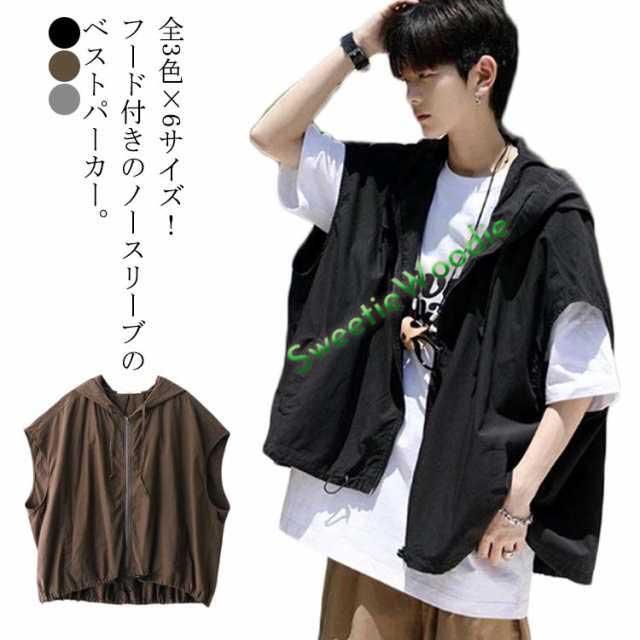 パーカー ノースリーブ メンズ レディース 前開き 薄手 ジップアップ フード付き 大きいサイズ トップス ジップアップパーカー ベスト タンクトップ パーカーベスト 春夏秋 スポーツ 袖なし 無地 ゆったり 重ね着 アウター カジュアル 体型カバー おしゃれ
