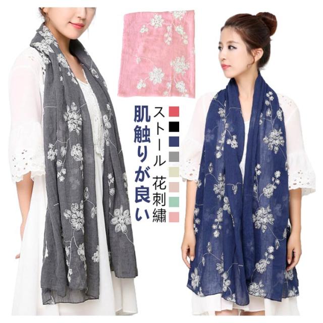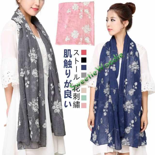 秋冬 ストール 春夏 コットン 花柄 刺繍 レディース 秋 ストール 秋用 結婚式 大判 ガーゼ uvカット 冷房対策 薄手 綿 花柄 誕生日プレゼント 母の日 母の日のプレゼント ストール 敬老の日 プレゼント 敬老の日