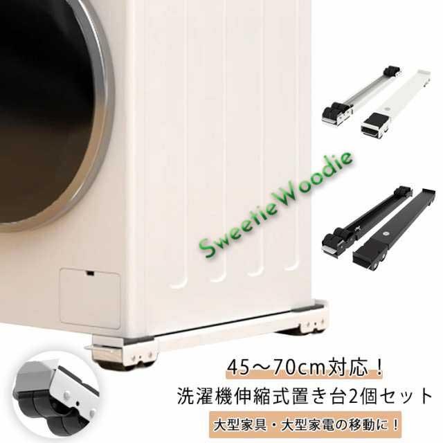 ランドリーラック 冷蔵庫 台 2個セット 洗濯機スライド台 洗濯機台 洗濯機 伸縮式 2個セット 調節可能 防水パンド 洗濯機 かさ上げ台 洗濯機 キャスター 4足16輪 洗濯機 台 キャスター付き ラック ドラム式洗濯機 置き台 引っ越し 洗濯機台 ホワイト