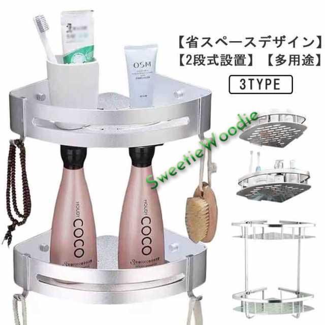 シャンプーラック 三角 浴室用 バス用品 コーナーラック 2個セット ラック バスラック お風呂 浴室用コーナーラック バスルーム 棚 錆びない 簡単収納 ステンレスラック 水切り設計 サビ防止 壁掛け 強力粘着固定 穴あけ不要