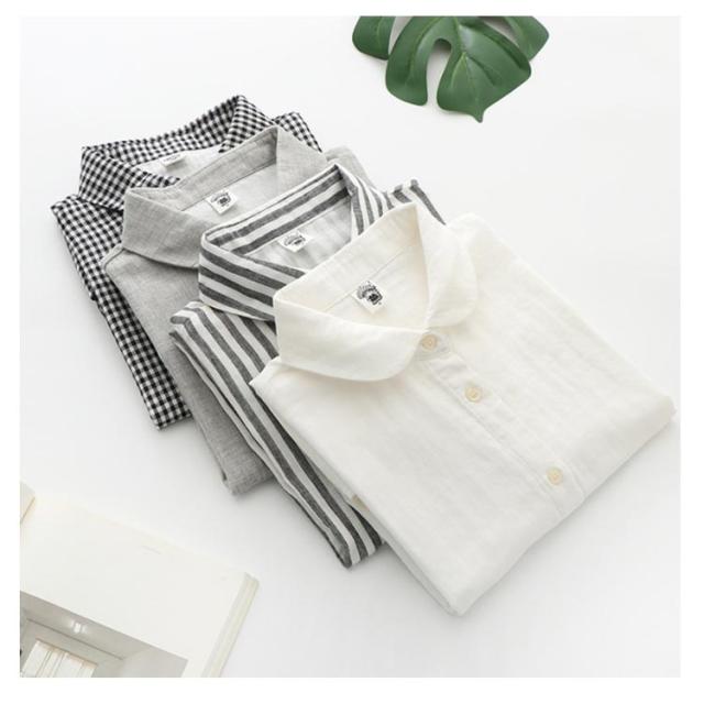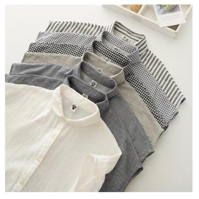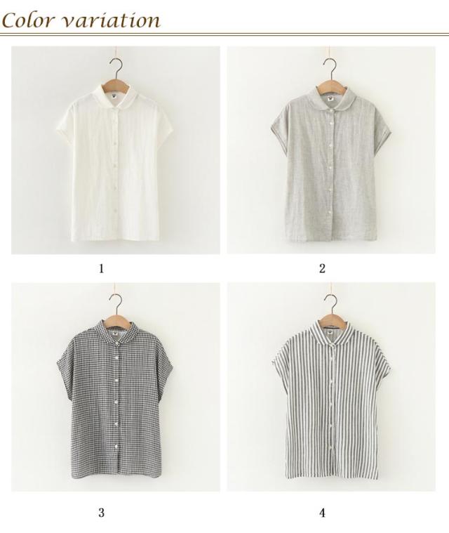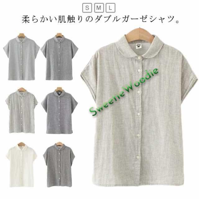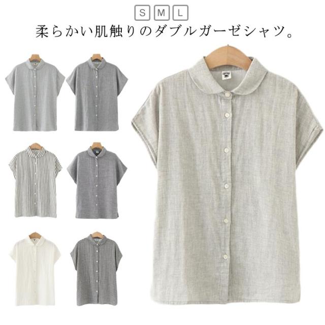 ダブルガーゼ シャツ 夏 ブラウス レディース トップス ガーゼ 半袖 綿 ガーゼシャツ ガーゼ 秋 春 無地 チェック ストライプ 柔らかい ナチュラル 可愛い