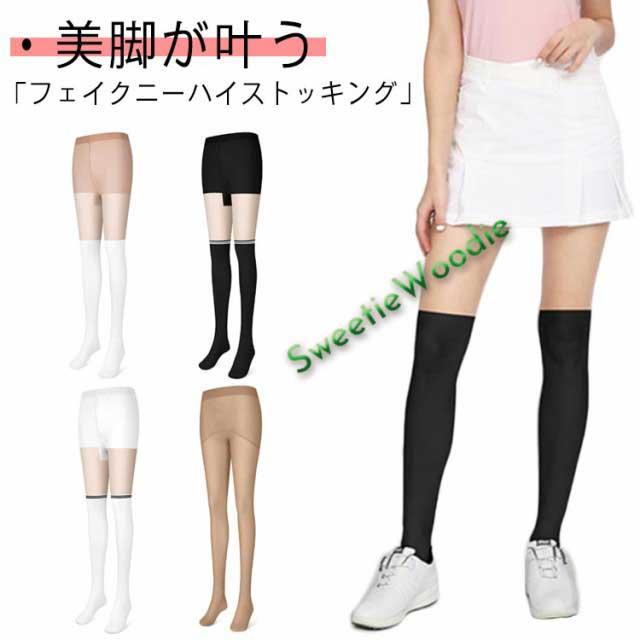 オールインワン レディース ストッキング ゴルフ ゴルフウェア タイツ ニーハイ ソックス パンスト フェイクニーハイストッキング ゴルフ スポーツ UVカット ストレッチ 伸縮 一体型デザイン 日焼け防止 紫外線対策 ゴルフストッキング