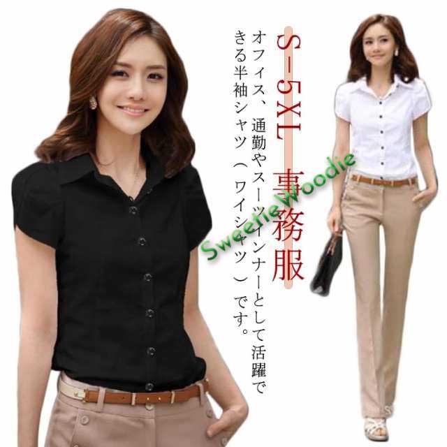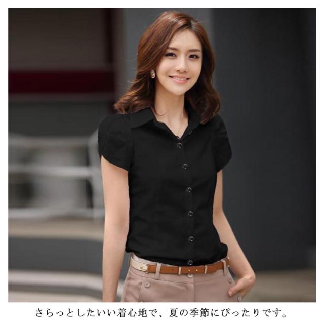 Yシャツ レディース 事務服 ブラウス OL ビジネス オフィス 制服 カジュアル フォーマル 通勤 パフスリーブ レディース トップス 白シャツ 半袖 ワイシャツ チューリップ袖 シャツ 無地 フレア パフ袖 襟付き 大きいサイズ 春 夏 秋 ホワイト ブラック