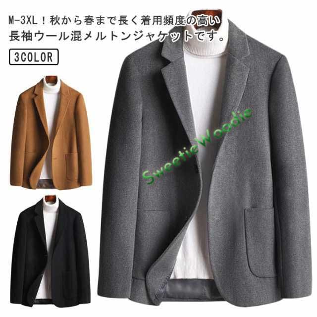 メルトンジャケット メンズ 2つボタン ラシャ スリムジャケット カジュアルジャケット 通勤 無地 ビジネスジャケット チェスターコート ウール混 秋 冬服 テーラードジャケット 細身 ウール混 紳士 男性着 ブレザー 父の日 プレゼント ギフト 30代 40代