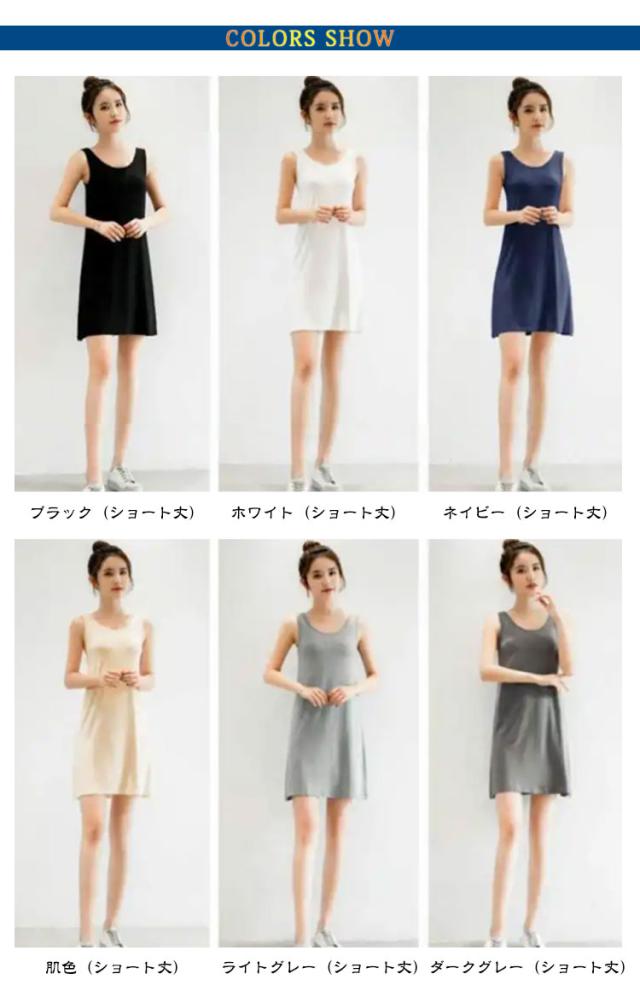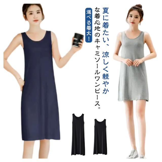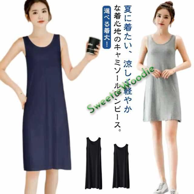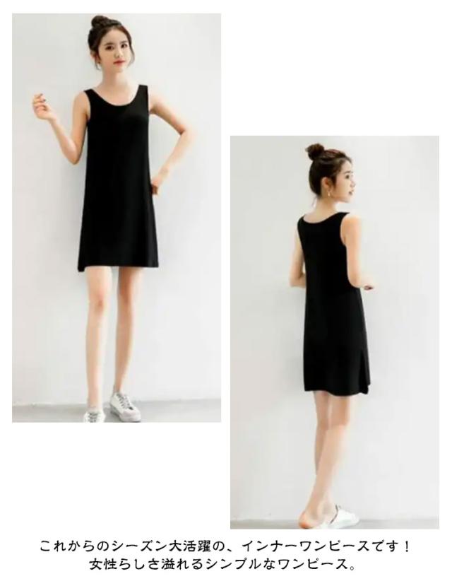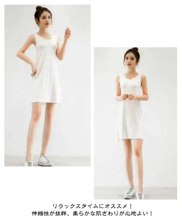 ペチコート インナー 選べる着丈 インナーワンピース ノースリーブ ワンピース シンプル キャミソールワンピ タンクトップ ショート丈 ロング丈 透け防止 ワンピース 大人 夏 無地 カジュアル ルームウェア 部屋着 2タイプ