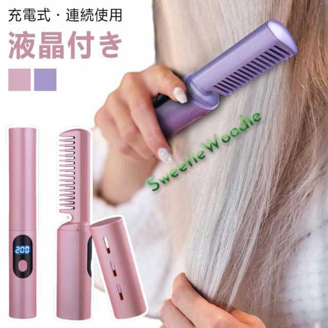ヘアアイロン ヒートブラシ 温度3段階調節 ヘアアイロンブラシ ヒートブラシ 静電気防止 蓋あり カール 両用可能 USB充電式 コードレス ブラシヘアアイロン 火傷防止 MAX200℃ アイロンブラシ コードレス 海外対応 旅行 ミニ型 大容量