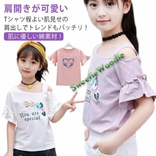 オフショルダー 可愛い 女の子 ブラウス 夏服 韓国子供服 おしゃれ 女の子 肩出し キッズ 肩開き カジュアル 綿 カットソー 子供服 ベビー服 tシャツ Tシャツ おしゃれ 女の子 ジュニア スポーツウェア 送料無料 110-120 130 140 150 160