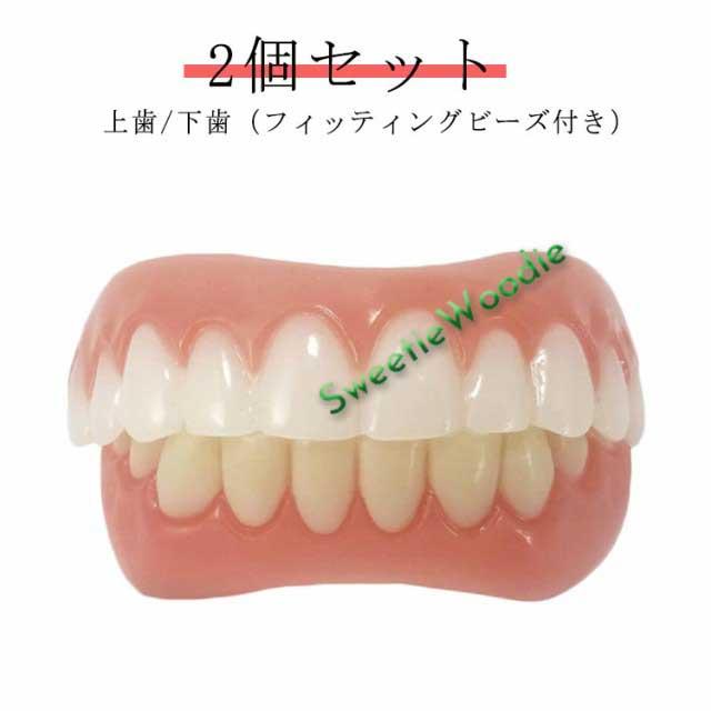 2個セット 上歯 下歯 ワンタッチ付け歯 審美歯 女性用 男性用 フィッティングビーズ付き 上歯用 下歯用(男女兼用) 入れ歯 義歯 付け歯 仮歯 審美目的 旅行 舞台 ハロウィン コスプレ コスチューム グッズ 道具 小物 送料無料
