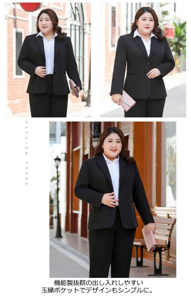 | テーラードジャケットとテーパードパンツとワイシャツの3点セットフォーマルスーツになります。【S-8XL】 ジャケットは程よくウエストにシェイプを入れた女性らしいシルエットです。 ジャケットは深めに開いたV空きデザインで顔周りをすっきりと、気になるウエストまわりをさりげなくカバーします。 機能製抜群の出し入れしやすい玉縁ポケットでデザインもシンプルに。 テーパードパンツは、ヒップから太ももまでボディラインを覆い隠します。 ジャケットとパンツはさらりとして滑らかな生地を使用しています。 程よい厚みの生地感でシーズンレスでご着用いただけます。 ジャケットは裏地が付いている為、シルエットを綺麗にキープします。 洗濯機で洗えるので、清潔に着ていただけます。 | |