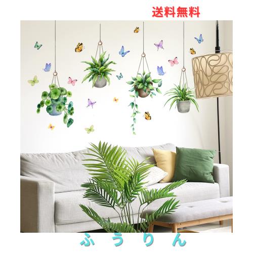 WOHAHA ウォールステッカー おしゃれ 植物 壁掛け鉢植え 蝶 緑 景色 壁紙シール はがせる おしゃれ 北欧 壁に貼る リビング ベッドルーム