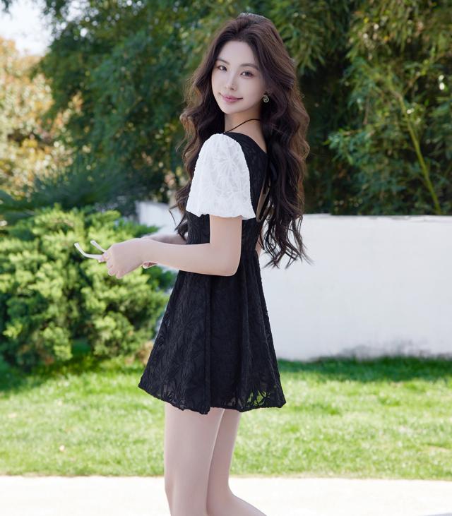 控えめな透け感が大人可愛いレースワンピース水着