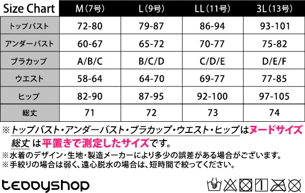 ※トップバスト・アンダーバスト・ブラカップ・ウエスト・ヒップはヌードサイズ、