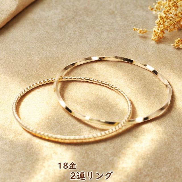 18金 リング 2連 指輪 細い k18 18k ゴールド レディース メンズ アクセサリー ジュエリー