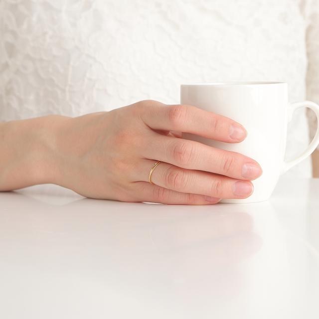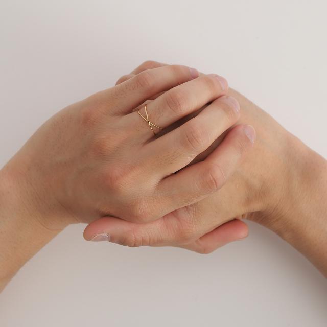 ニュアンスの違うひねりをつけているデザインなので、この指輪だけでも充分オシャレ。