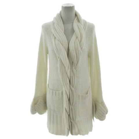 【中古】ランゲージ Language モヘアブレンドロングニットカーディガン 584-19043 長袖 アイボリー 2 レディース