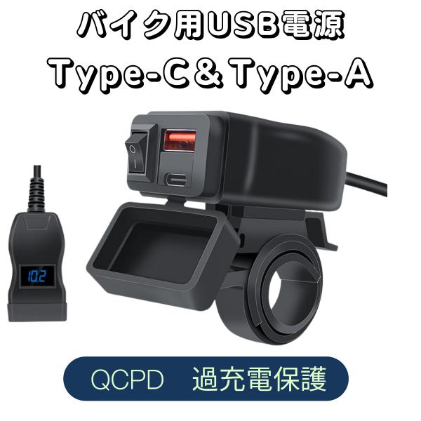 バイクUSB電源 防水 充電器 角型 過充電保護 バイク用USB Type-C Type-A 2ポート 電圧表示バッテリー管理