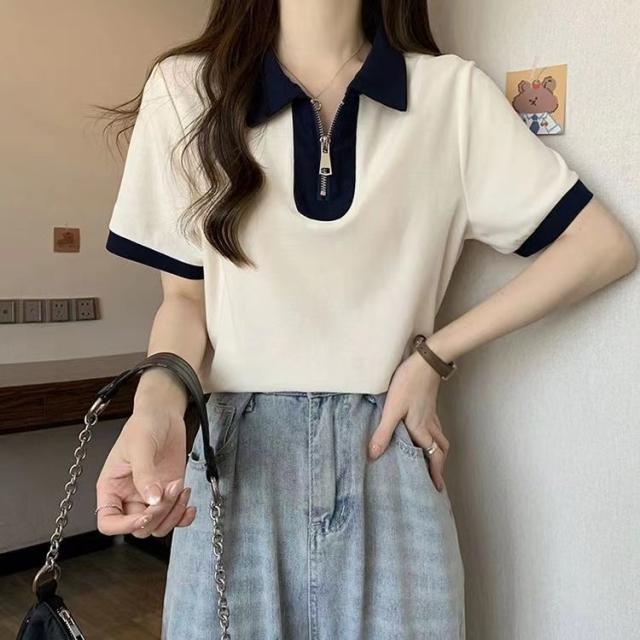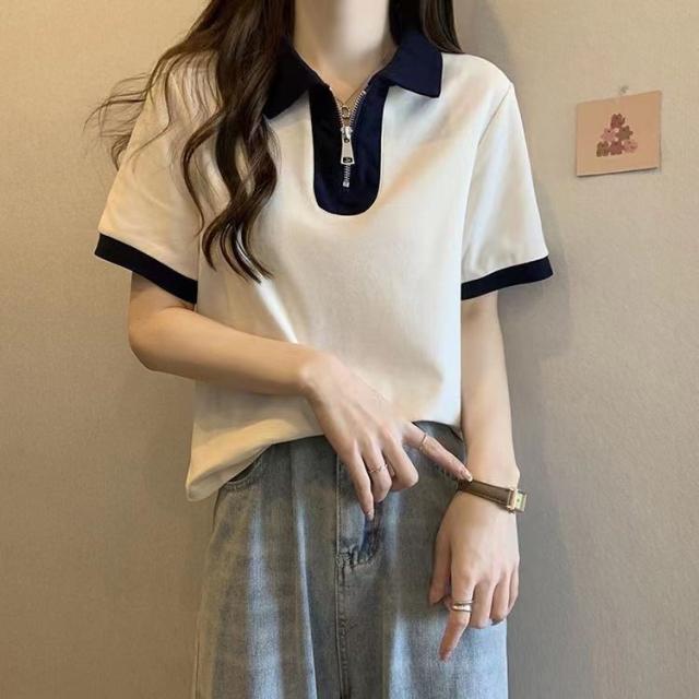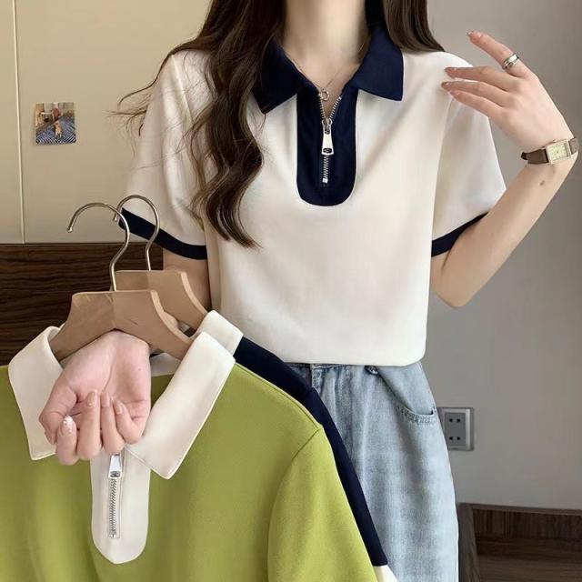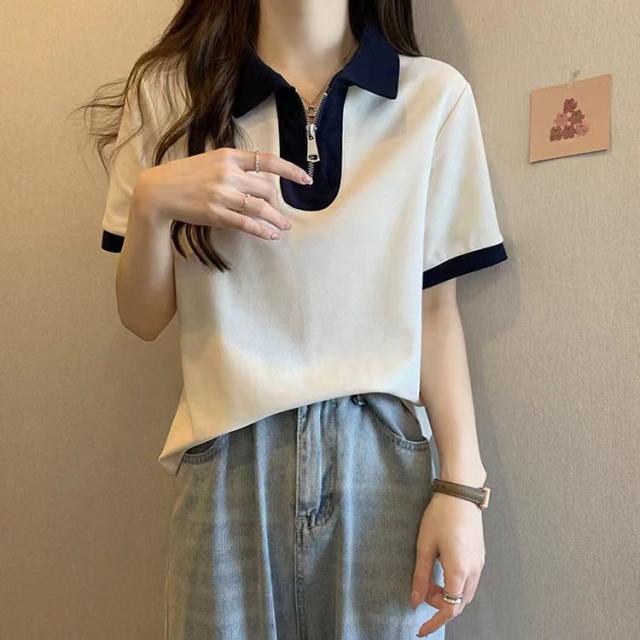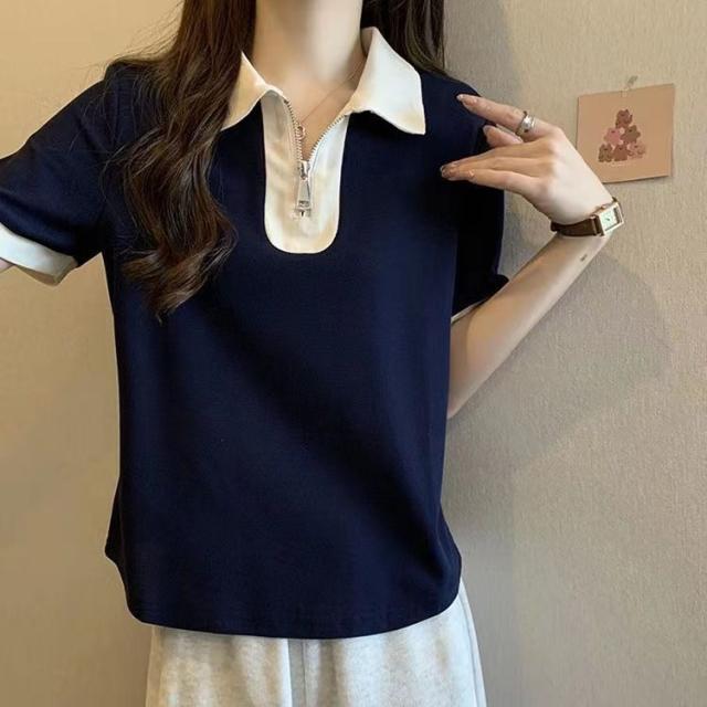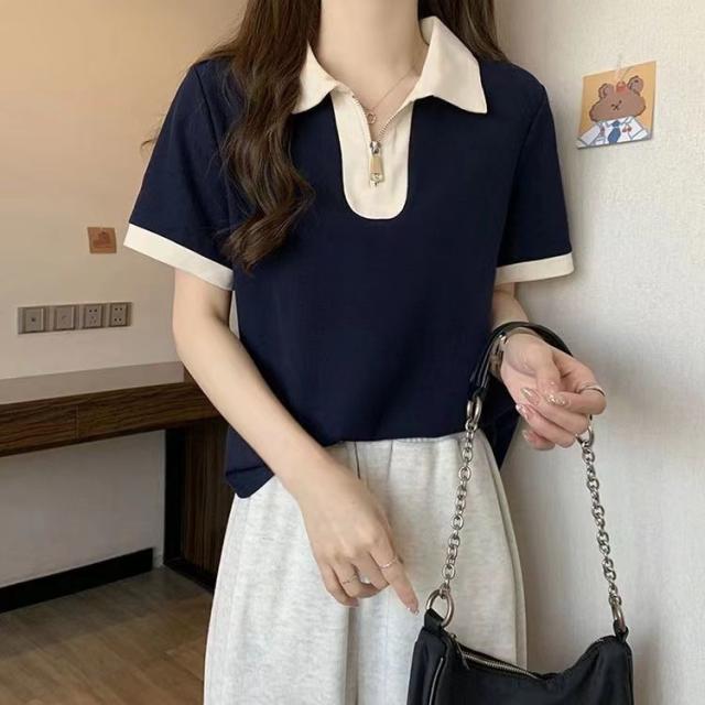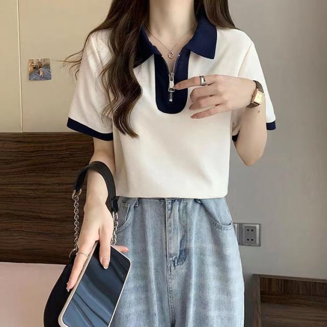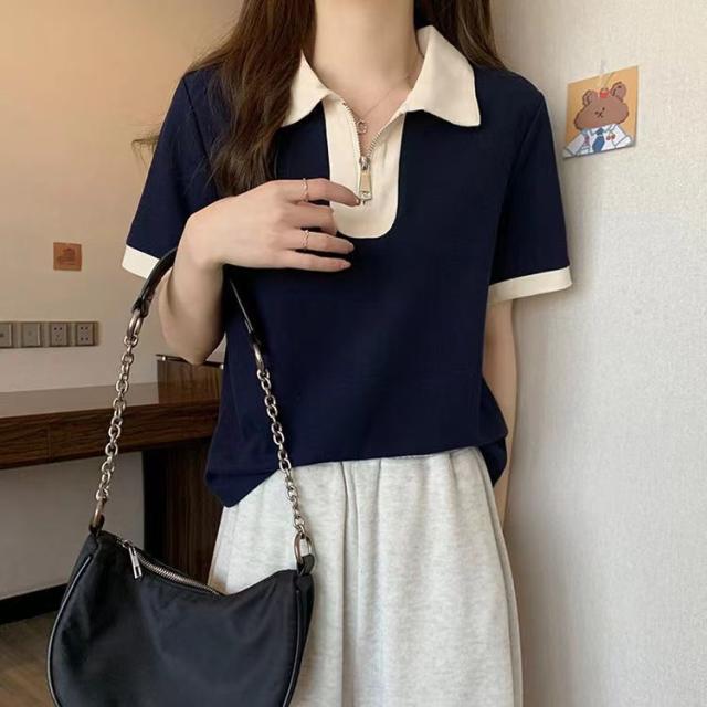 ポロシャツ 半袖 ボーダー ニット トップス サマーニット ポロニット tシャツ vネック スキッパー ボーダー柄 襟付き ポロ ハーフジップ