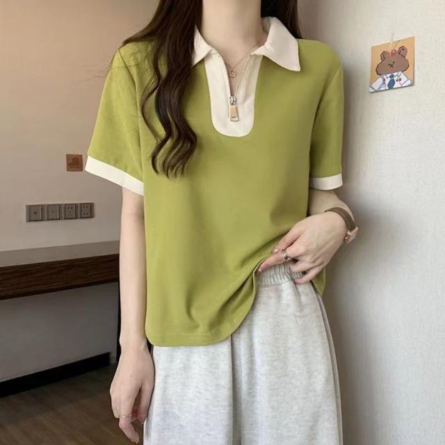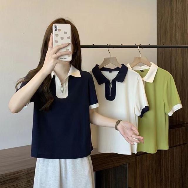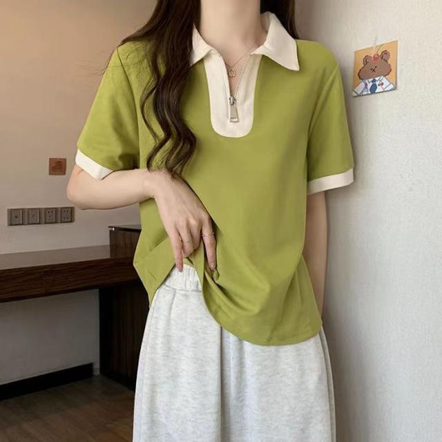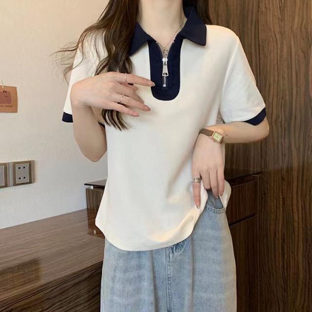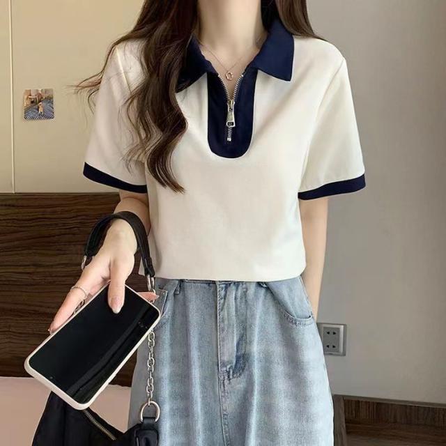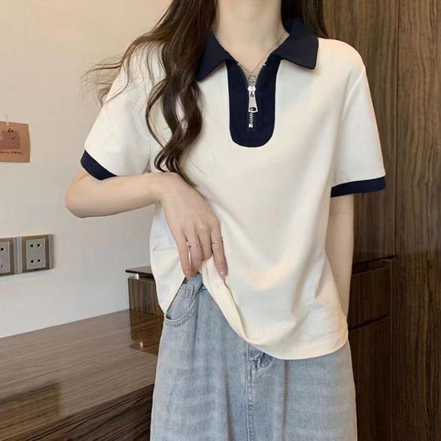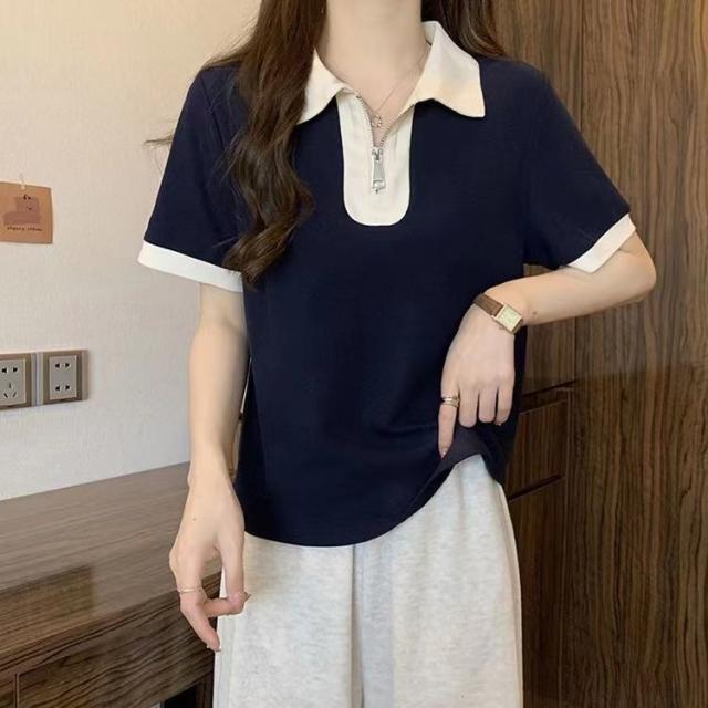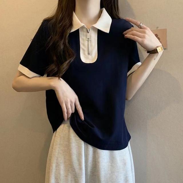 ポロシャツ 半袖 ボーダー ニット トップス サマーニット ポロニット tシャツ vネック スキッパー ボーダー柄 襟付き ポロ ハーフジップ
