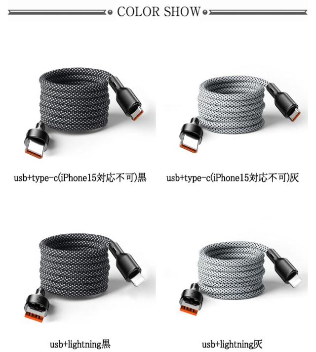 | 色 | usb+type-c(iPhone15対応不可)黒 usb+type-c(iPhone15対応不可)灰 usb+lightning黒 usb+lightning灰 type-c+type-c(iPhone15対応)黒 type-c+type-c(iPhone15対応)灰 type-c+lightning黒 type-c+lightning灰 |