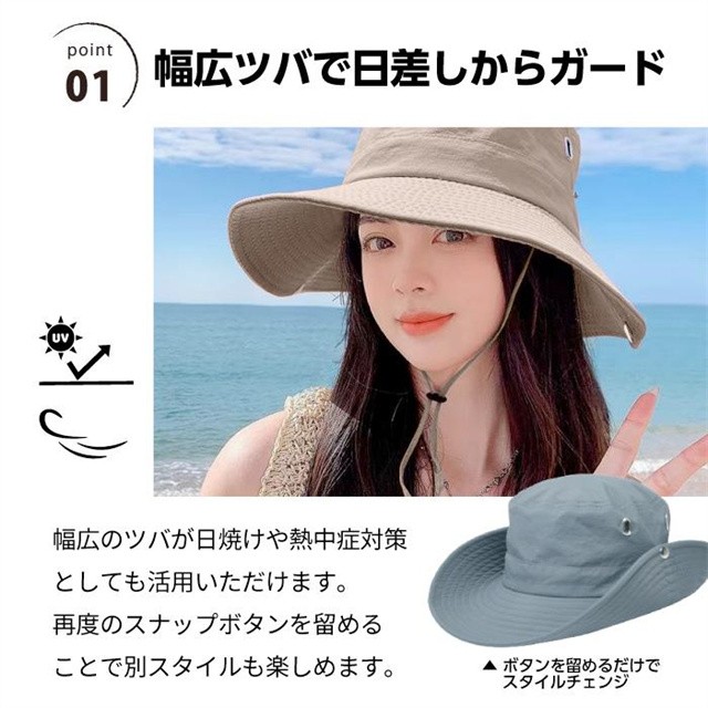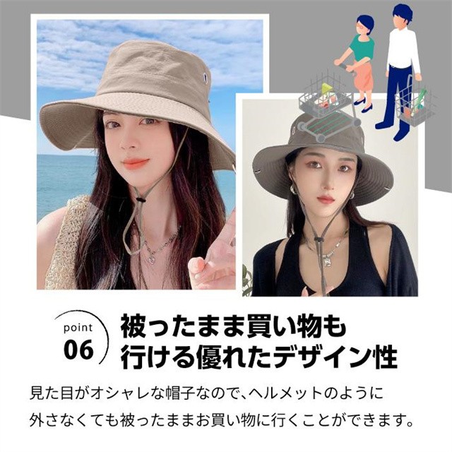 - 360°紫外線から顔周りをしっかり守る! 幅広いつばで日差しをガード