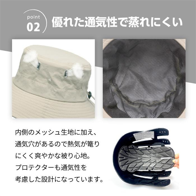 - 風通しの良い素材で、 一般的なヘルメットより蒸れにくい! 内部の温度上昇を抑えてムレを防ぎます。