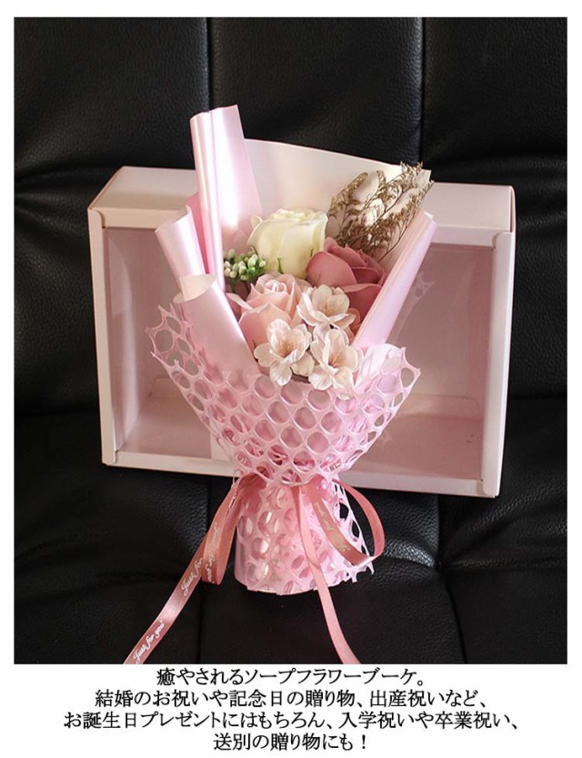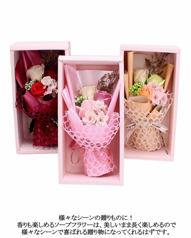 ソープフラワー 花束 ソープフラワーギフト ブーケ アレンジメント 花 プレゼント シャンパン ギフト 石鹸花 枯れない花 ボックス付き バレンタイン 誕生日 母の日 記念日 先生の日 お祝い 発表会 結婚祝い 退職祝い ホワイトデー ホワイトデーお返し