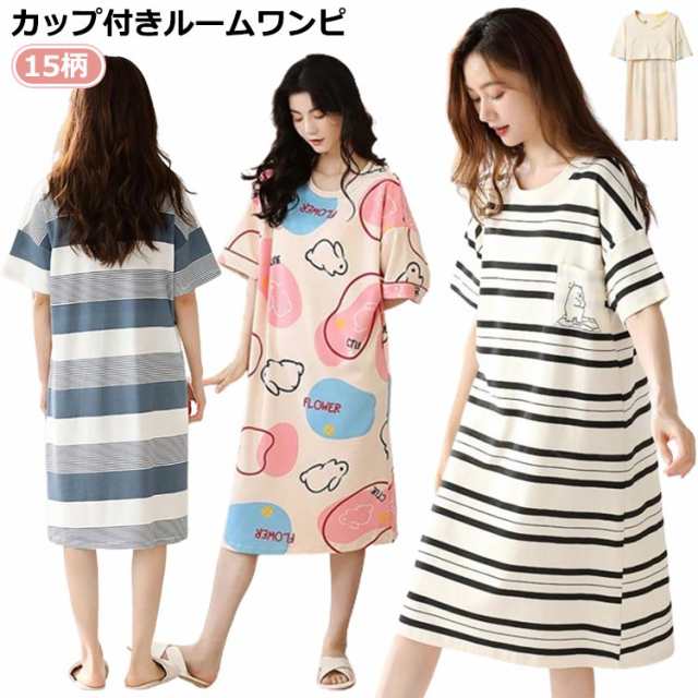 カップ付き ワンピース レディース 半袖 かわいい パジャマ ロング 綿 コットン 大きいサイズ ルームウェア ロングTシャツワンピース パジャマワンピース ブラカップ付き 綿 コットン ゆったり 大きいサイズ 部屋着 おしゃれ かわいい 薄手 春 夏 秋 シンプル カジュアル