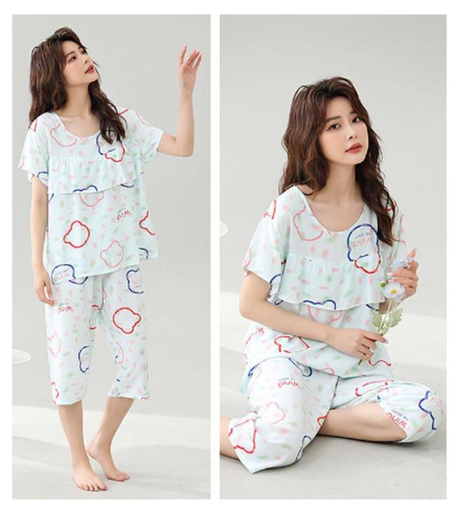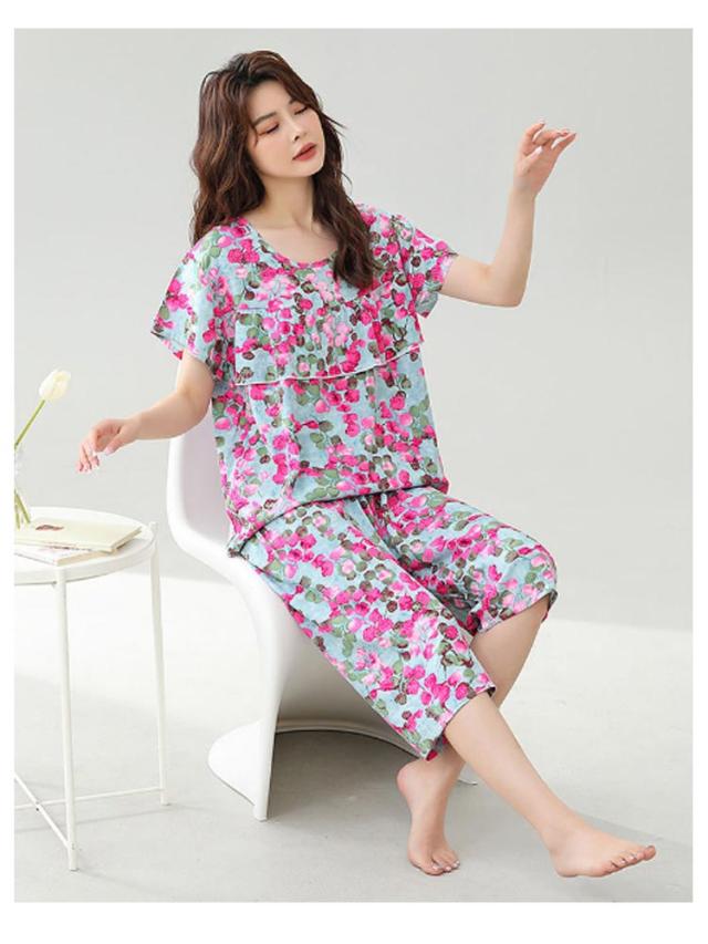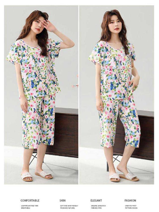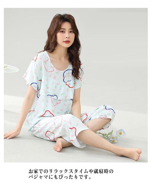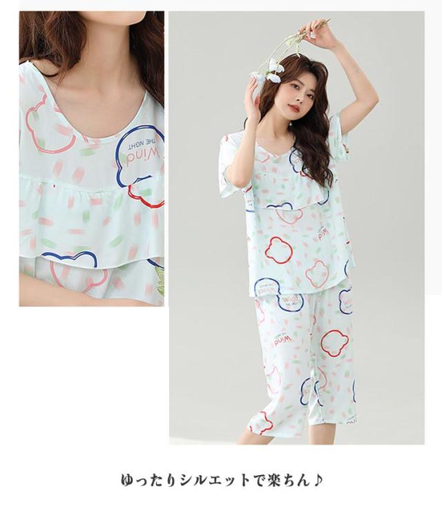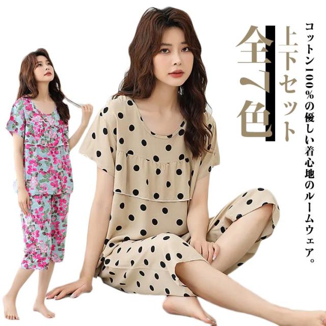 セットアップ ルームウェア 夏 綿100% パジャマ 上下セット 半袖 Tシャツ パンツ ロングパンツ 7分丈 ズボン 夏用 レディース 寝間着 ナイトウェア 部屋着 コットン 綿 薄手 柔らか ゆったり 大きいサイズ 総柄 ドット柄 花柄 【送料無料】