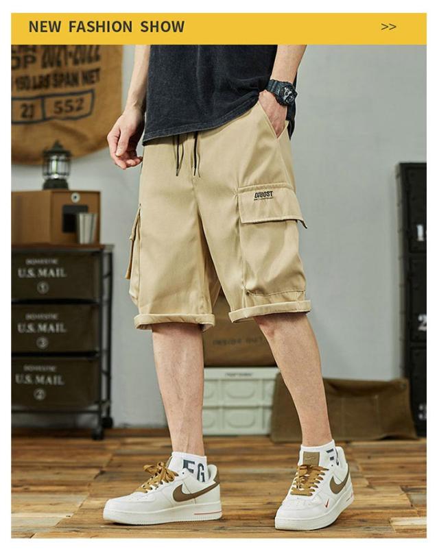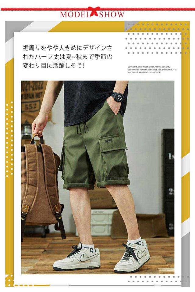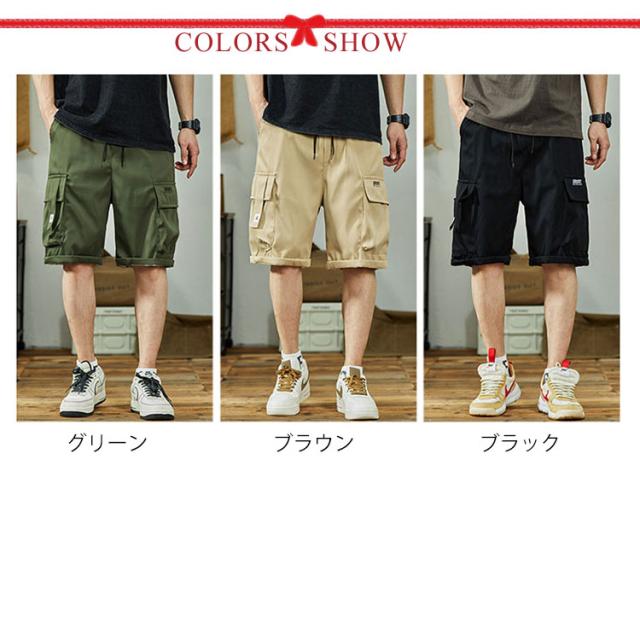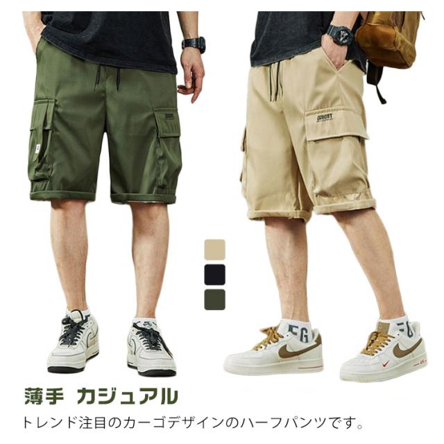ハーフパンツ メンズ ひざ丈 カーゴパンツ カーゴショーツ ミリタリーパンツ 半ズボン ショートパンツ ショーパン 短パン ゆったり ストレート ポケット ウエストゴム 春 夏 薄手 カジュアル 大きいサイズ シンプル スポーツ ストリート パンツ B系 送料無料
