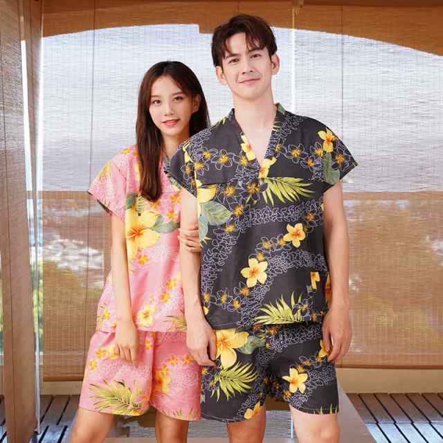 レディース メンズ パジャマ バスローブ 浴衣 トップス+パンツ 和風 花柄 温泉 ホテル 使い捨て シンプル カジュアル 寝巻 部屋着