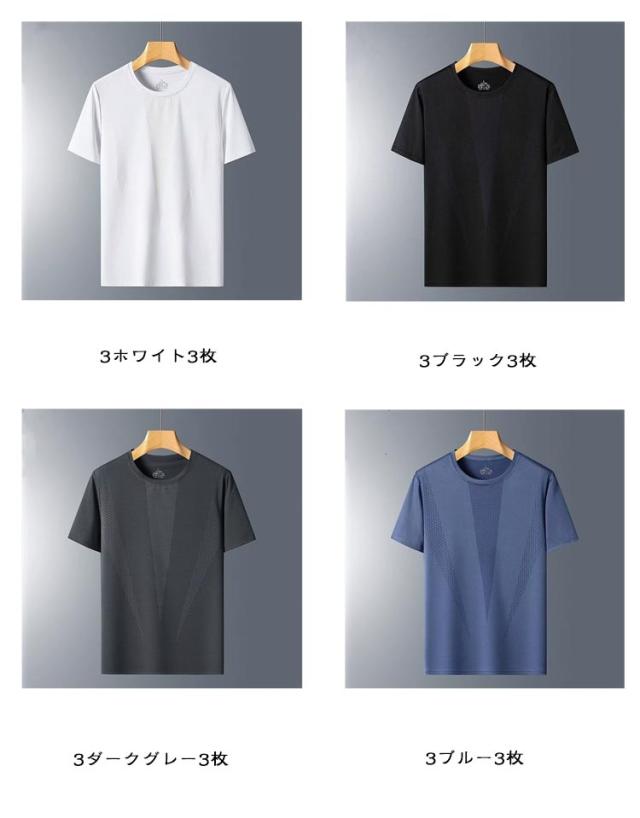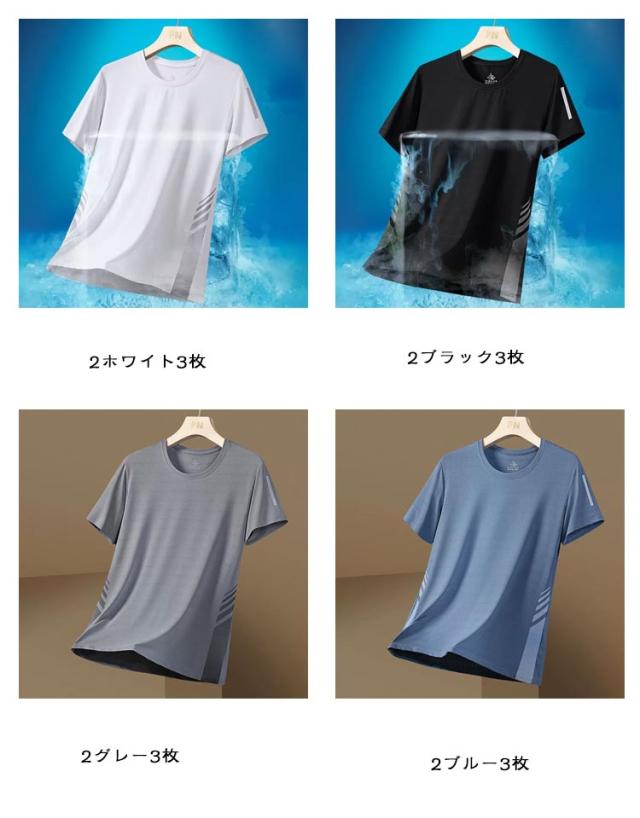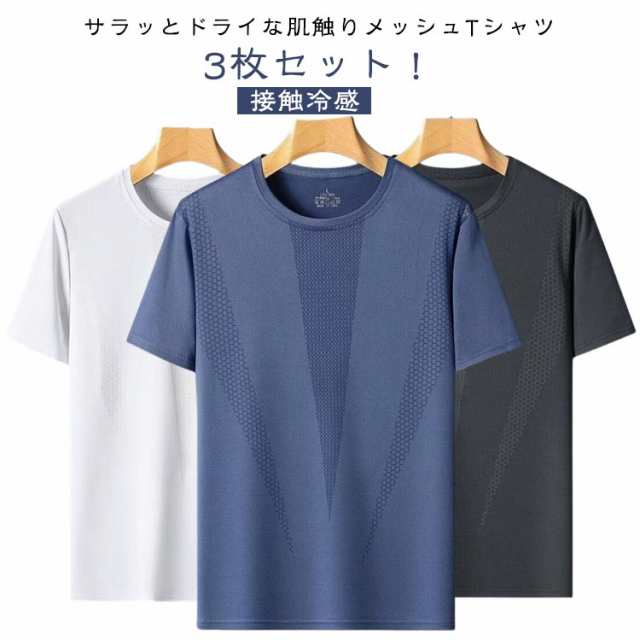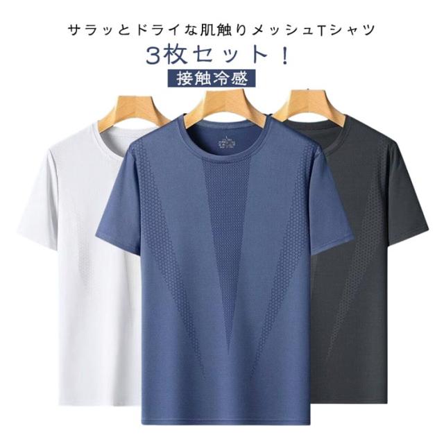 3枚セット! 半袖 Tシャツ 半袖tシャツ アイスシルク 接触冷感 夏用 涼しい トップス クルーネック 吸汗速乾 UVカット メンズ レディース 男女兼用 メッシュ スポーツ ストレッチ 通気性 ゴルフインナー スポーツ 作業服 作業着 ランニング カジュアル 送料無料