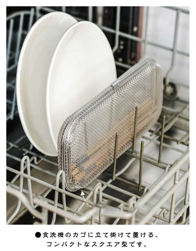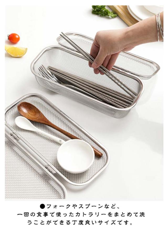 カトラリー 小物が洗える 小物入れ お弁当用品 食洗機カゴ 食洗機用 小物洗いカゴ メッシュカゴ スプーン 小物の飛び散り防止 フォーク 箸 水切り キッチン ステンレス 台所用 乾燥機
