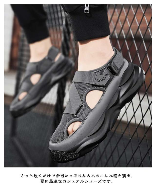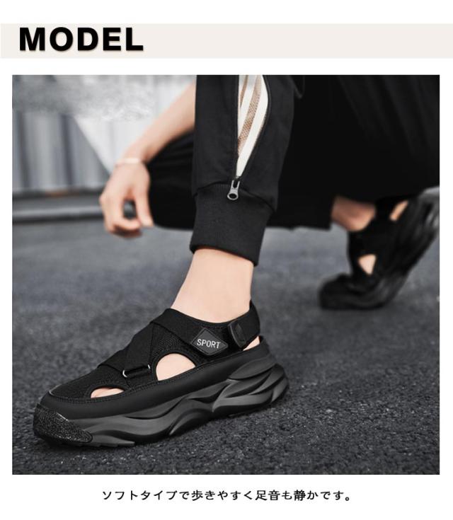 | スニーカーのような楽しいサンダル! ソフトタイプで歩きやすく足音も静かです。 シンプルな見た目でカジュアルからキレイめまで スニーカーデザイン、履きにくさを軽減してくれました、快適な履き心地に実現する厚底サンダル! アウトソールには凹凸のある仕様に設計された、濡れた場所でも滑りにくいことが特徴です。 通学、普段履き、アウトドアやビーチに大活躍の一足。 さっと履くだけで余裕たっぷりな大人のこなれ感を演出、夏に最適なカジュアルシューズです。 幅広く対応し、オールシーズン使える優秀アイテム! | |