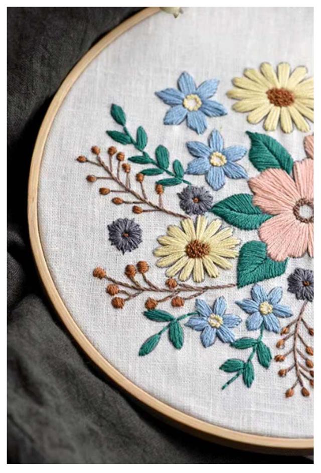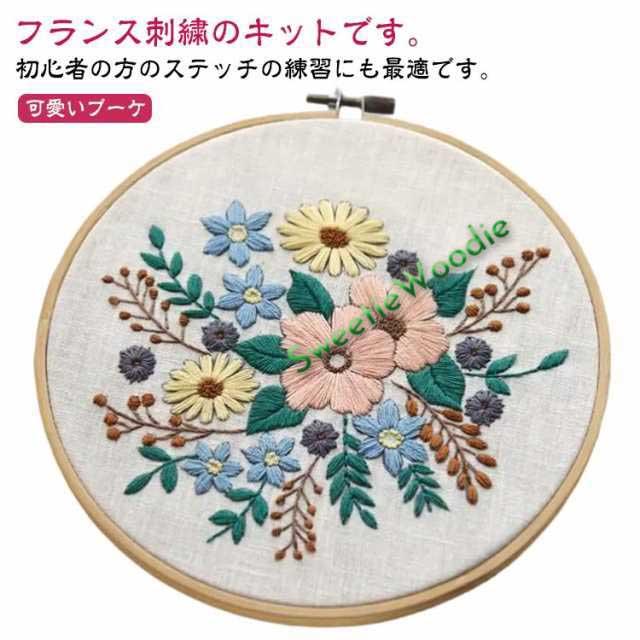 プラスチック製の枠付き pink 花 刺繍キット 基本ステッチ 刺繍キット きれい フランス刺繍キット 初級 初心者 20cm 入門 刺繍枠 刺しゅう糸 かわいい おしゃれ 刺しゅうキット セット スターターキット ボタニカル ハンドメイド プレゼント 贈り物