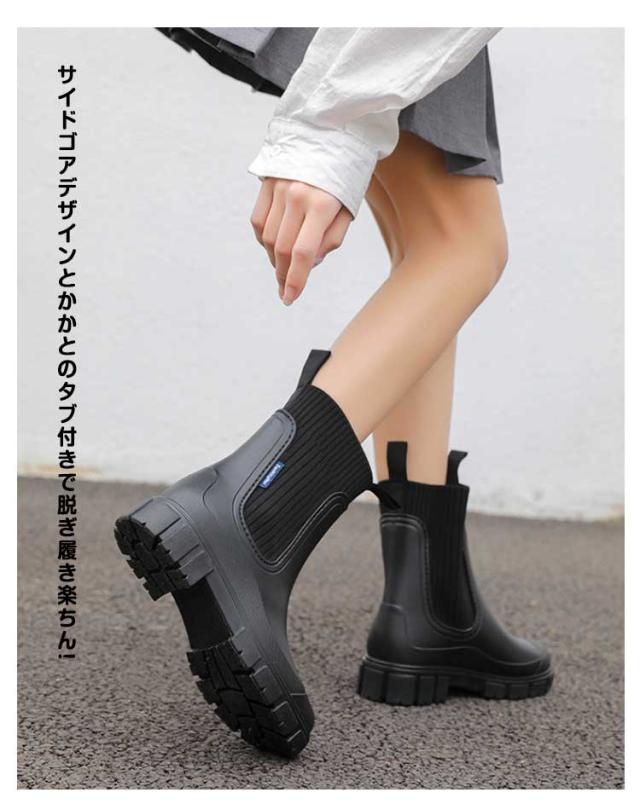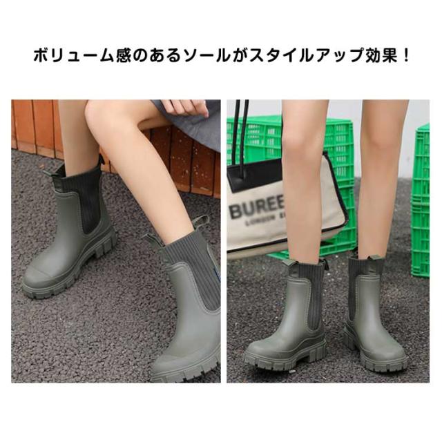 ボリューム 厚底 ワークブーツ 歩きやすい レディース レインブーツ トラック 厚底 サイドゴア チェルシーブーツ 晴雨兼用 雨靴 ショート タンクソール サイドゴアブーツ かっこいい 柔らかい 長靴 おしゃれ 雨 軽量 通勤