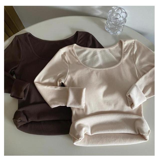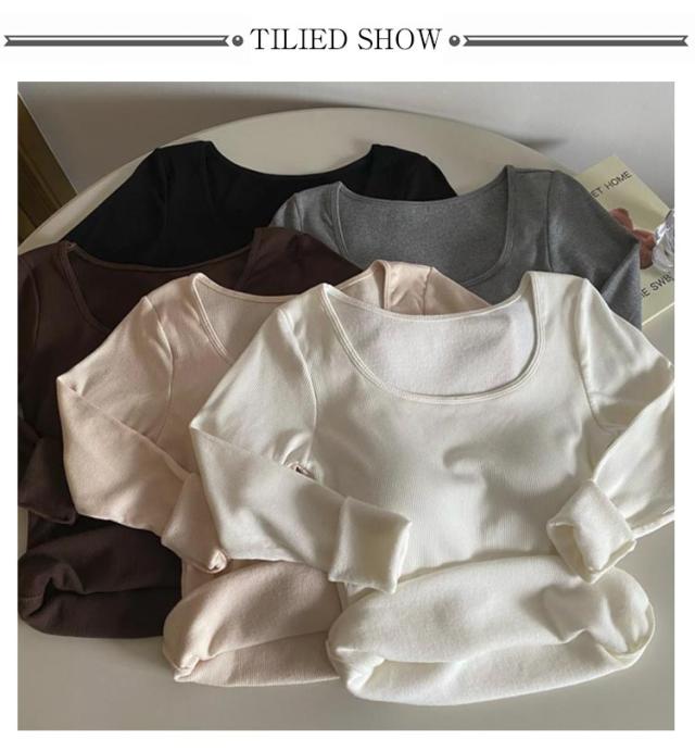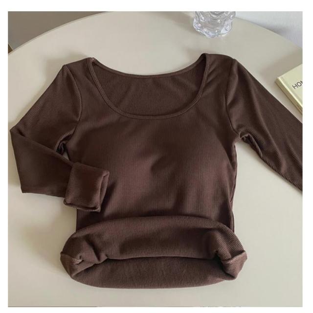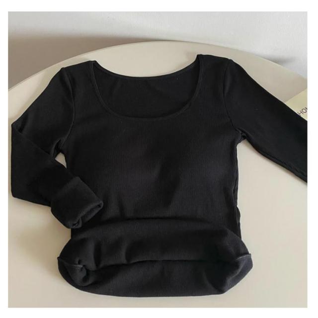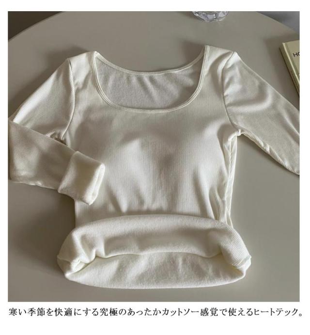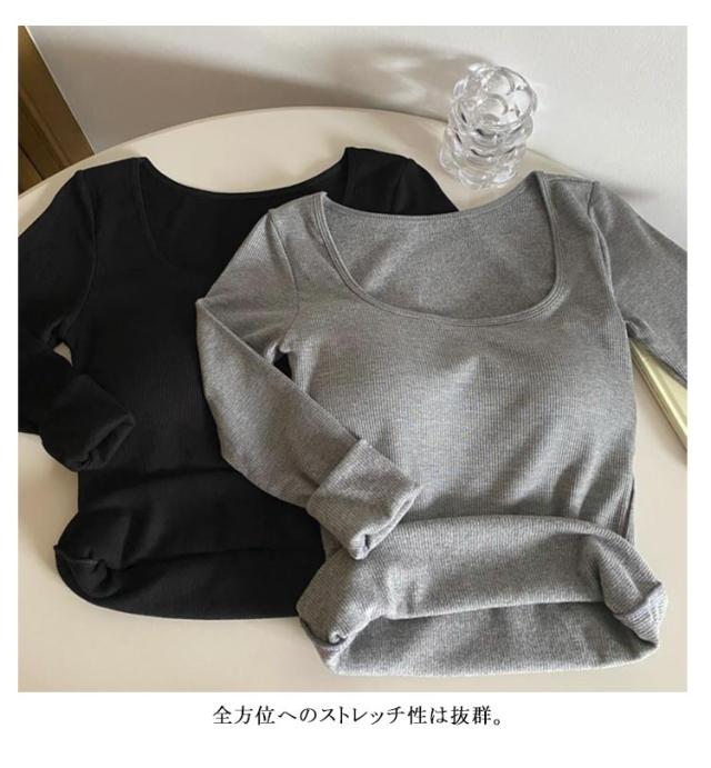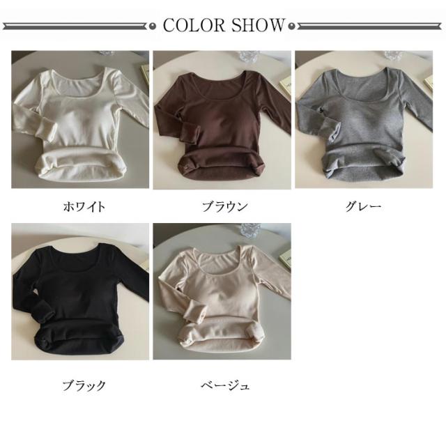 レディース 秋冬 リブ カットソー 裏起毛インナー カップ付きインナー カップ付き 極暖 ヒートテック 長袖 ブラトップ カップ付き 下着 裏起毛 フリース アンダーシャツ Uネック Tシャツ 防寒インナー 無地 あったか 肌着 ルームウェア 婦人 女性 保温