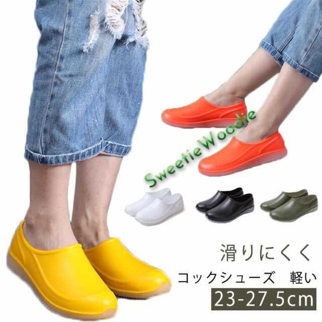 | コックシューズ 23-27.5cm 滑りにくく 軽い 滑りにくさを追求。 調理場の水・油に対して「滑りにくさ」を追求した特殊デザインの靴底を使用。 軽量設計で疲れにくい。 軽量で疲れにくく、靴底は履き心地の良いクッション性。 汚れても拭き取れる!ソールを外して丸洗いOK! | |