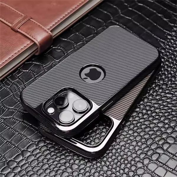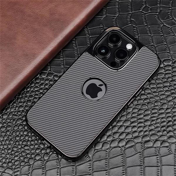 高級電着カーボンファイバーパターンロゴ穴マットケース iphone 16 15 14 13 プロマックス耐衝撃バンパーバックカバーシェル
