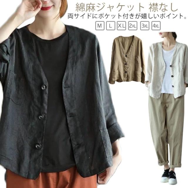 ノーカラージャケット 羽織 高見え 夏 ジャケット レディース 春 アウター 着回し 襟なし リネンジャケット サマージャケット 綿麻ジャケット ブルゾン 大人 サマー