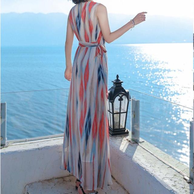 リゾートワンピース 結婚式 かわいい ハワイアン ハワイ 大人可愛い 夏ワンピース 夏 沖縄 ワンピース ノースリーブ 小柄 おしゃれ ロング ベルト付き ボヘミア風 裏 夏ワンピ