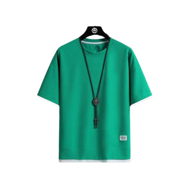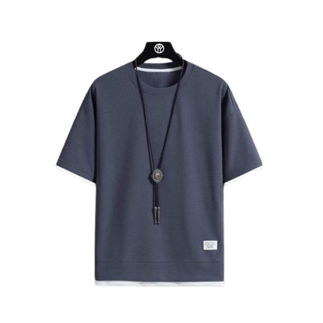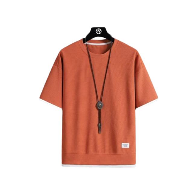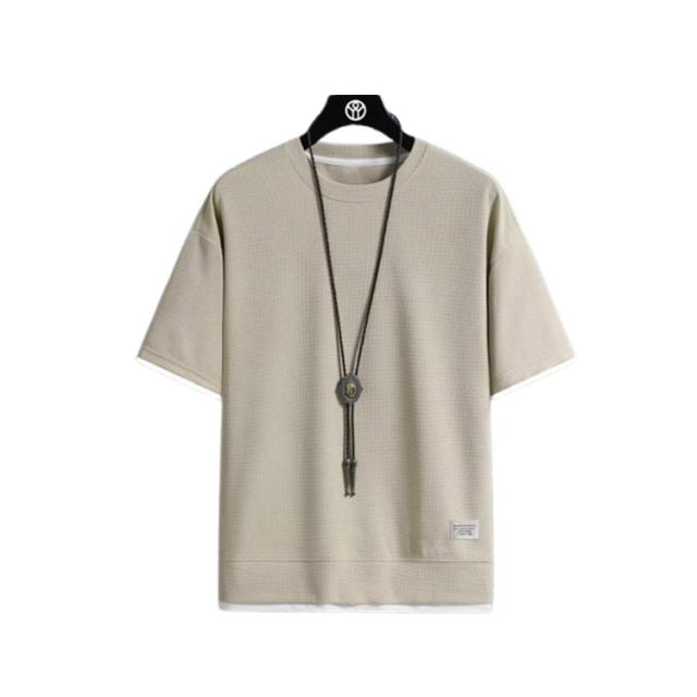 Tシャツ レイヤード風 夏 トップス メンズファッション 特集 ホワイト グレー ダークベージュ ベージュ オレンジ グリーン M L XL 2XL 3XL