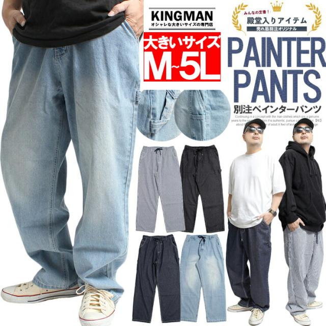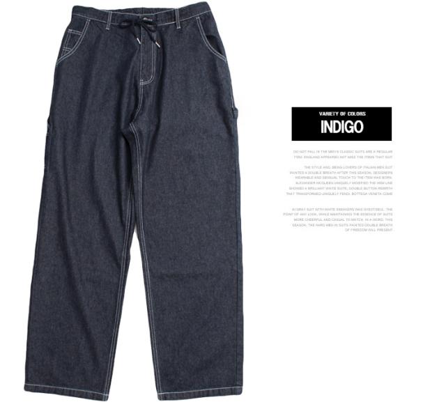 メール便で送料無料 ワイドパンツ メンズ 大きいサイズ デニム ユーズド加工 ルーズシルエット ワイドデニム ジーンズ ペインターパンツ デニムパンツ バギーパンツ ジーパン ルーズ 太め パンツ 厚手 ボトムス バギー 青 ガウチョパンツ ビッグ ストレート ワークマン