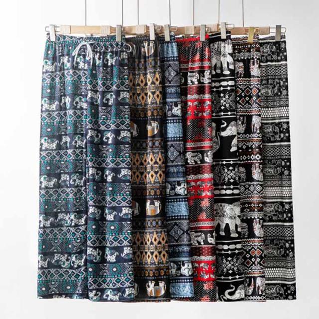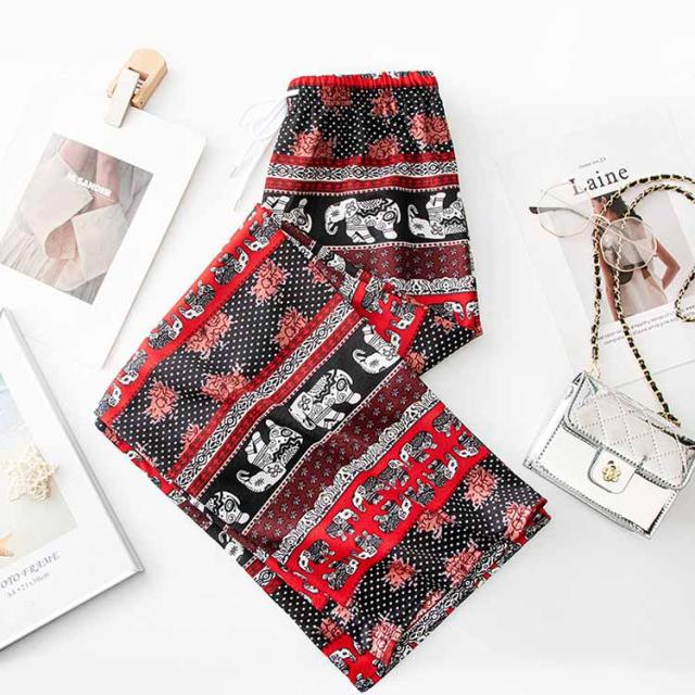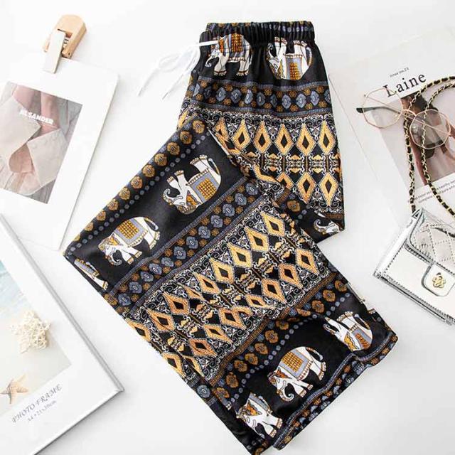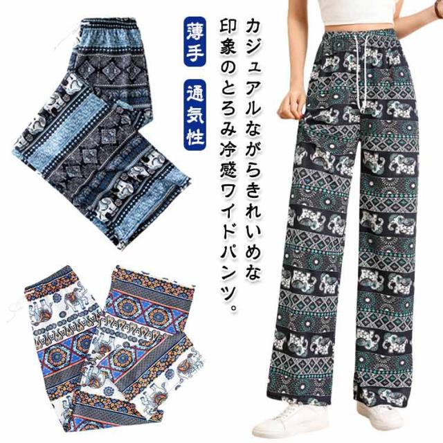 ワイドパンツ レディース ロング 涼感 ロングパンツ 冷感 ゾウ 柄 タイパンツ 夏 薄手 ワイド パンツ 総柄 ストレッチ とろみ ルームウェア 落ち感 通気性 ハイウエ 部屋着