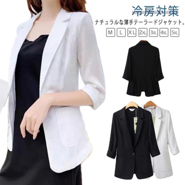 サマージャケット トップス 大きいサイズ 冷房対策 夏 ゆったり レディース ジャケット 春 テーラードジャケット ビジネス 春夏 スーツジャケット 薄手 フォーマル シンプル サマージャケッ 七分袖