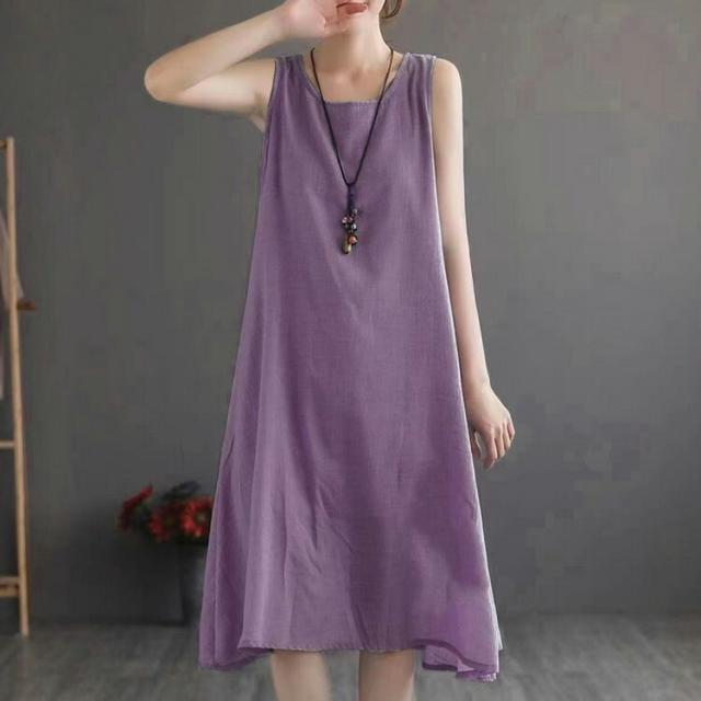 ノースリーブ 薄手 ワンピース シンプ ワンピース 割引 ホワイト グリーン グレー パープル M L XL 2XL 3XL 4XL