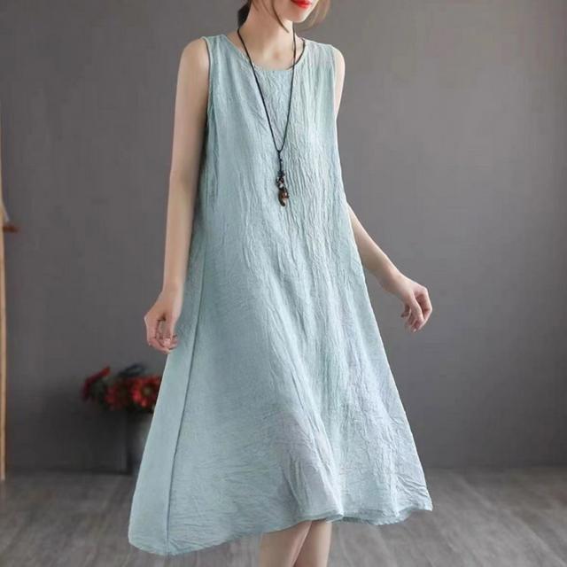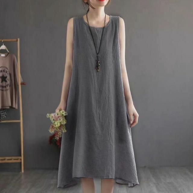 ノースリーブ 薄手 ワンピース シンプル 涼しい レディース フェミニン ナチュラル ロングワンピース 無地 ゆったり 大きいサイズ 着痩せ コットン 部屋着 通気性 大人 ロング丈 ワンピ Aライン