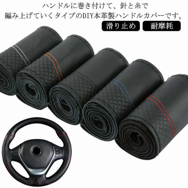 ステアリングホイールカバー 手縫い 編み込み ハンドルカバー ステアリングカバー 取付簡単 汚れ防止 レザー 自動車用 軽自動車 ビジネス 撥水 握りやすい 簡単装着 乗用車 内装用品 おしゃれ 38cm 父 母 父の日 母の日 プレゼント ギフト 贈り物